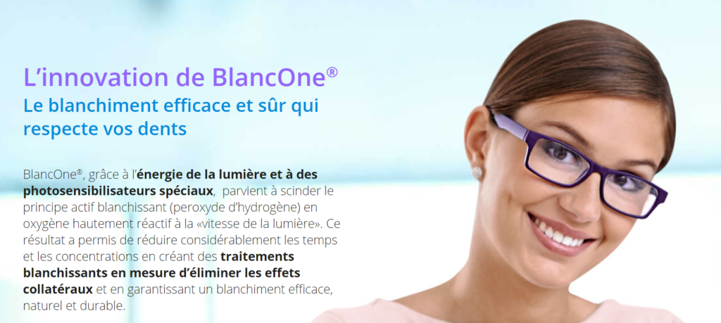 Dans le plein respect de cette norme, BlancOne propose pour la première fois une gamme de traitements blanchissants cosmétiques qui associe la sécurité des faibles pourcentages de peroxyde d’hydrogène et de la compétence du professionnel dentaire à l’immédiateté du résultat, à l’absence d’effets secondaires et aux frais limités que vous recherchez. (BlancOne Click: 59€: à l’appréciation du praticien suivant la santé bucco-dentaire qui nécessite une consultation préalable)